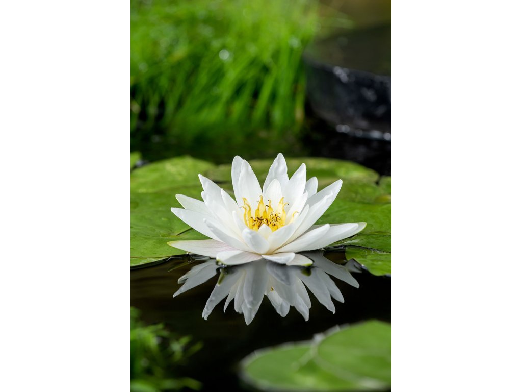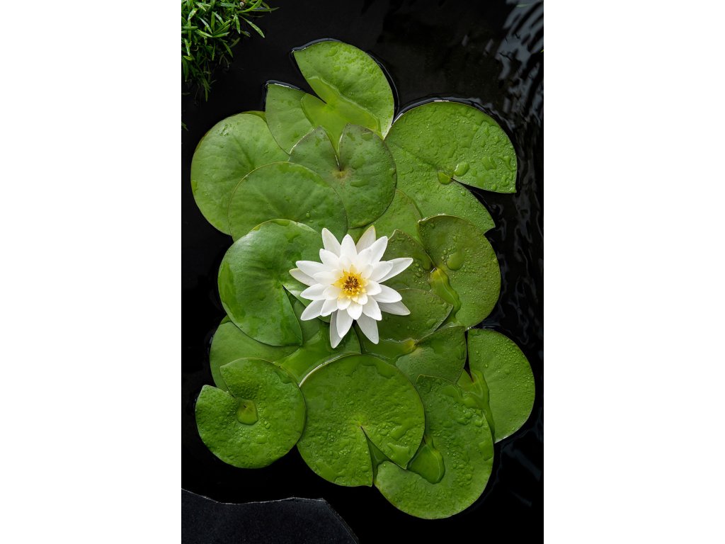 Lekníny doslova rozzáří vaše jezírko. Vodní rostliny okysličují prostředí a zajišťují biologickou rovnováhu v jezírku. Tím je zajištěna čistá voda a dobré životní prostředí pro ryby. Žáby a vážky budou vděčné za úkryty, místa k odpočinku na stoncích a pod listy. Existují různé druhy rybničních rostlin. Tento bílý leknín Nymphaea Alba má krásný žlutý střed. Dominantní listy leknínu poskytují rybám ve vodě dostatek stínu, což také brání růstu řas. Leknín vysaujeme na jaře. Květina kvete v létě.